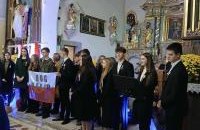 Po Mszy młodzież przedstawiła montaż słowno-muzyczny pokazujący dramat rozbiorów i trud walki o niepodległość. Na koniec umiłowaną Ojczyznę oraz naszą wolność powierzyliśmy opiece Bożej w śpiewie „Boże coś Polskę….”